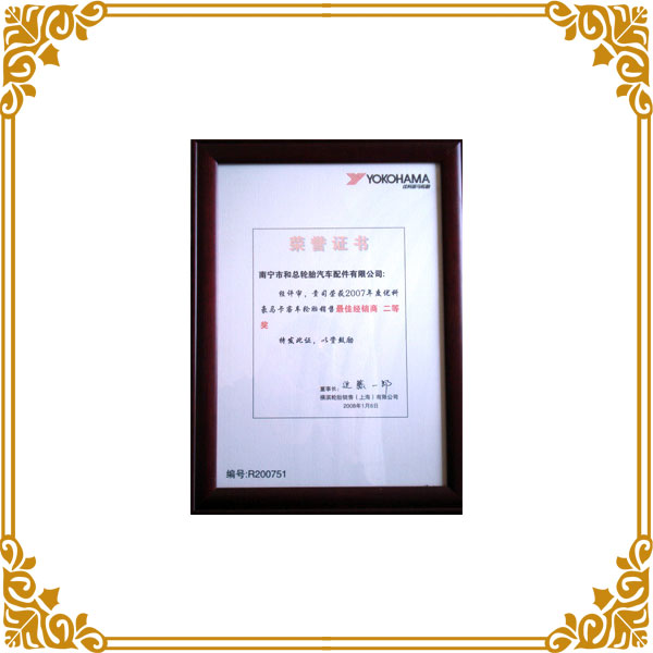 橫濱經(jīng)銷(xiāo)商證書(shū)