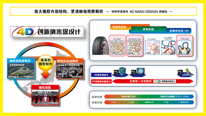 回顧?quán)嚨撈盏钠放瓢l(fā)展歷程,技術(shù)創(chuàng)新是出現(xiàn)頻率最高的關(guān)鍵詞。鄧祿普技術(shù)團(tuán)隊持續(xù)探索尖端科技,最新開發(fā)“4D創(chuàng)新納米級設(shè)計”技術(shù)運用大型放射光設(shè)備“Spring-8”、高強度質(zhì)子加速器“J-PARC”和超級計算機“京”,從納米級微觀領(lǐng)域真實再現(xiàn)橡膠分子結(jié)構(gòu)及運動形態(tài),使原材料的開發(fā)精度和效率實現(xiàn)了質(zhì)的飛躍,全面提升了輪胎產(chǎn)品的低油耗性能、抓地力性能和耐磨耗性能。